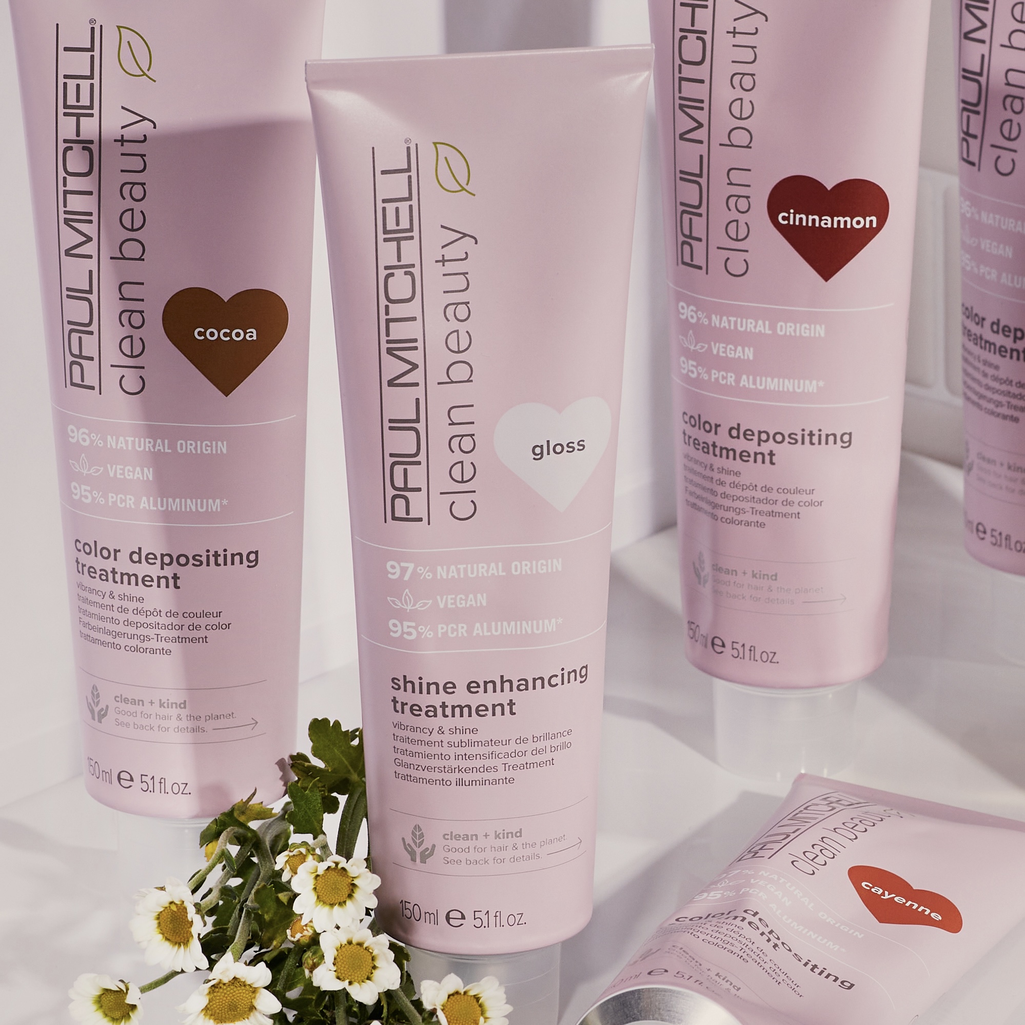 Підтримайте колір волосся між професійними фарбуваннями в салоні. Тонуючі маски Clean Beauty містять екстракт граната та олію огірочника, які захищають і живлять волосся.